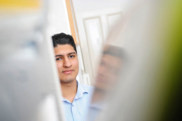 Die Herausforderung war es, die Mitarbeiter einer Internet-Agentur, die den ganzen Tag am Computer sitzen, bei der Arbeit zu zeigen. Ohne langweilig zu wirken. Wir haben viel mit offener Blende fotografiert und versucht, die Persönlichkeiten, die sich sonst hinter den Bildschirmen verstecken, fotografisch einzufangen. Die Motive haben wir für eine Image-Broschüre und für die Internet-Seite von Gosign GmbH geshootet.